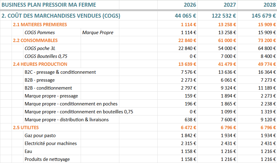 2. | Pressage Ă façon pour les professionnels (B2B) Volume prĂ©vu en 2027 : 90âŻ000 L/an, pour 135 tonnes de pommes. Pour rĂ©fĂ©rence: 3 vergers professionnels locaux ont dĂ©jĂ fait part de leur volontĂ© de presser ce volume au pressoir de Ma Ferme. |
