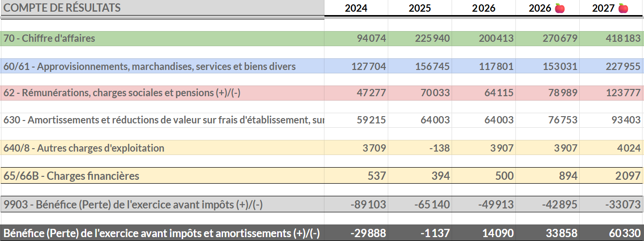 - Les subsides attendus (subsides à l'embauche et subsides à l'investissement) ne sont pas pris en compte et offrent une sécurité supplémentaire.
